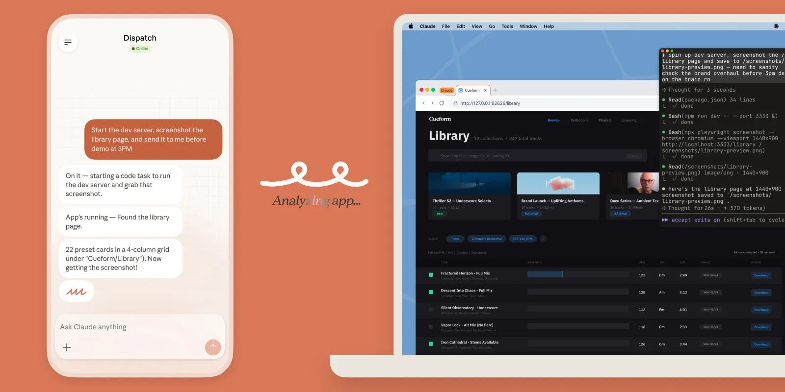 Dispatch låter dig skicka en uppgift från mobilen och Claude slutför den på datorn i bakgrunden — synkat i samma konversationstråd.